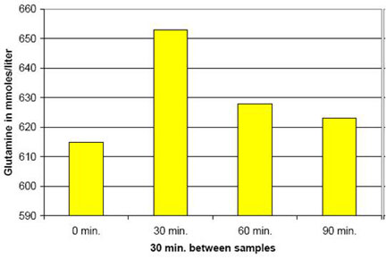 MuscleDefender utilizes a patented stabilized form of L-Glutamine that has been demonstrated to elevate plasma and muscle glutamine levels after ingesting which then remain elevated above baseline for at least 90 minutes (see Figure 1).